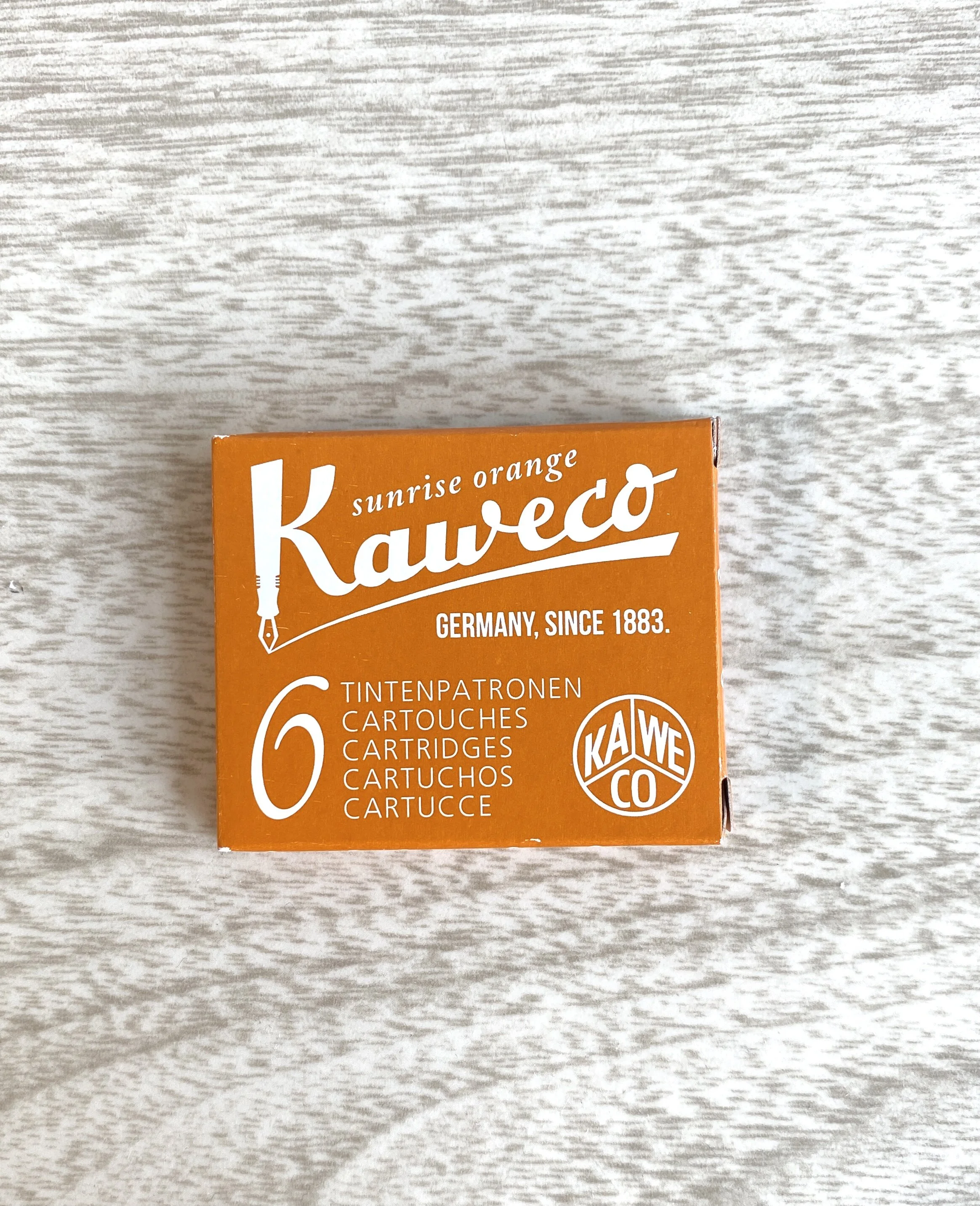 Kaweco ink cartridges in so many colors! Easy to replace and continue using your favorite German fountain pen. Simply unscrew the handle with the spring, pull out the empty ink cartridge, insert a new on and keep on going! Each box contains 6 cartridge ink replacements.